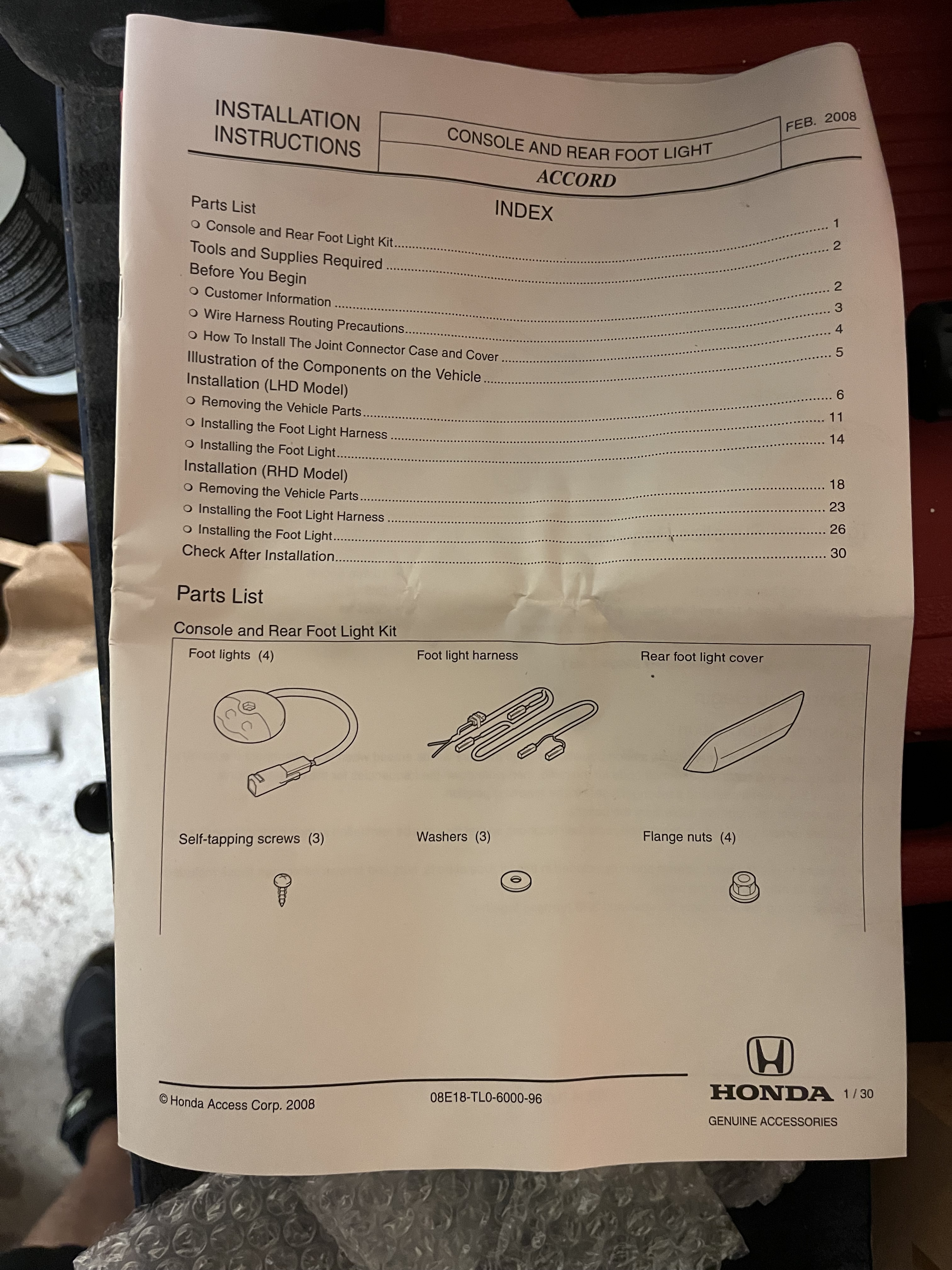 Honda Accord Type S - OEM Fotbelysning