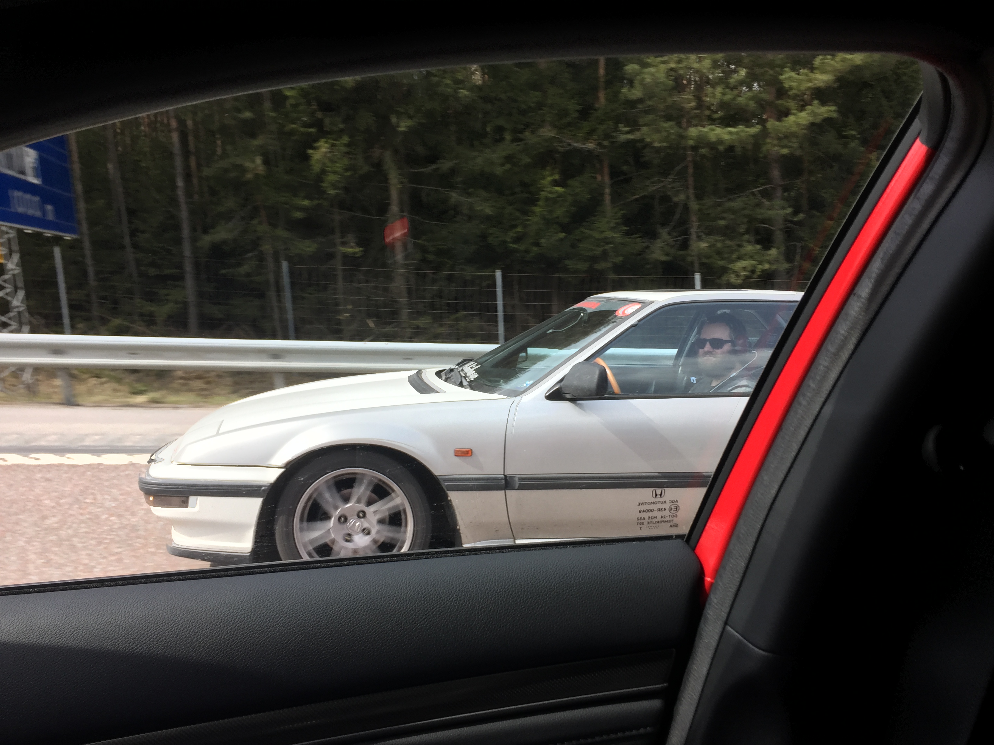 Taxi med Saman, tyvärr är han lite för fet för en CRX, täcker halva kameran.